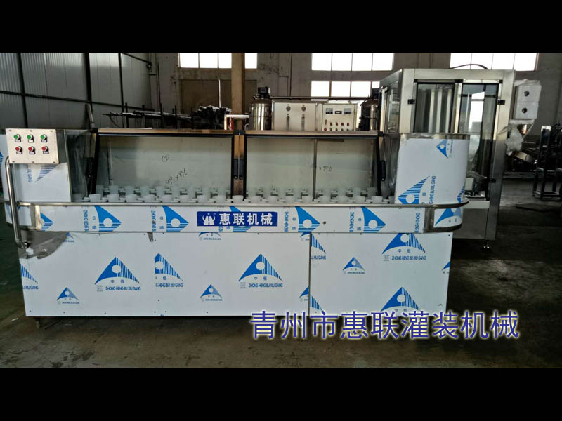 JCK-3000間歇式洗瓶機采用間歇式沖洗,沖洗次數為三次,可分為:粗水→消毒液→凈水;沖洗時間為24秒,生產能力3000瓶/時,該機配有兩個循環水箱,二臺加壓泵及過濾設備。消毒液、凈水可循環使用,還可在末級潔凈效果,是目前各企業沖洗設備更新換代的優質產品。